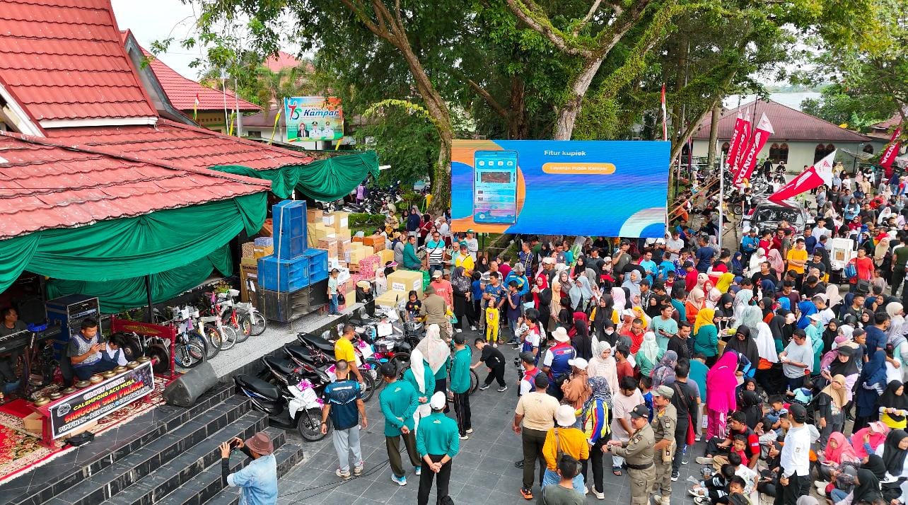 Bangkinang Kota, SuaraAura.com – Pemerintah Kabupaten Kampar melalui Dinas Komunikasi Informatika Dan Persandian Kabupaten Kampar secara resmi melaunching Aplikasi KupieK (Kumpulan Aplikasi Elektronik Kampar). Launching aplikasi tersebut dilakukan langsung oleh Pj. Bupati Kampar Hambali ,SE,MH yang didampingi langsung oleh Plt.Kepala Dinas Kominfo dan Persandian Kabupaten Kampar Irwan Muhammad, ST, ME, MIDS, bertempat di Lapangan Pelajar Bangkinang Kota yang bersempanaan dengan pelaksanaan Gerak Jalan Santai dan Pemecahan Rekor MURI 1.075 Gulai Ikan Salai Patin dalam Rangka Hari Jadi Kabupaten Kampar Ke-75 Tahun 2025, Minggu (2/2/2025).