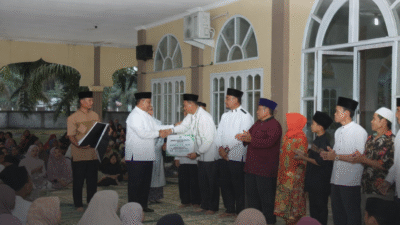 Penyerahan bantuan dilakukan secara simbolis menjelang waktu berbuka puasa. Momen tersebut berlangsung penuh kehangatan ketika pemerintah daerah dan masyarakat berkumpul bersama di dalam masjid.